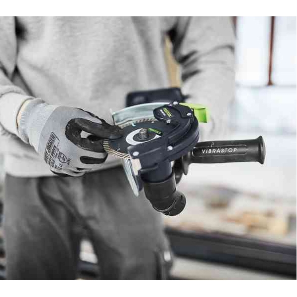 Lucru in conditii mai sanatoase datorita aparatorii de aspirare: Peste 95% din praful care se formeaza este transportat direct la aspiratorul mobil - ideal pentru debitarea cu producere scazuta de praf a materialelor minerale in spatii interioare.
