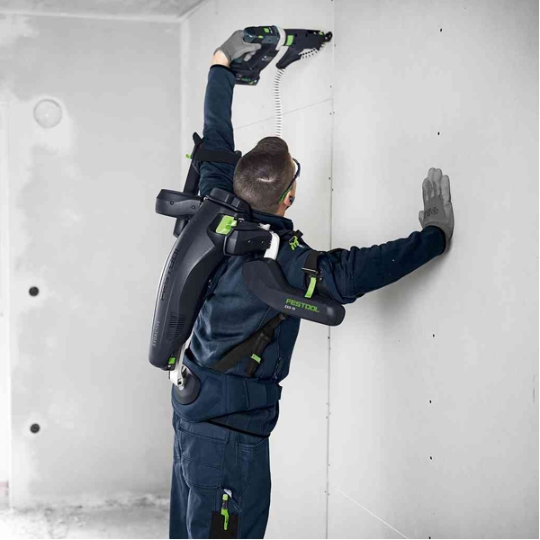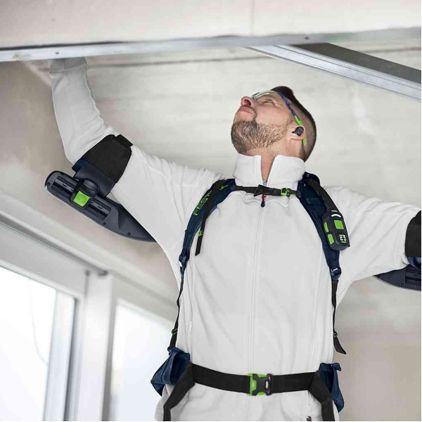 Cu exoscheletul ExoActive, puteti executa acum foarte simplu lucrari solicitante pe plafon. Indiferent daca este vorba despre zidarie uscata sau lucrari de zugravit, tapetare sau montare pe pereti sau plafoane: ExoActive va ofera un plus de putere atunci cand bratele va obosesc si va detensioneaza ceafa. Un nivel mai redus de solicitare fizica inseamna: Mai multa eficienta, mai multa concentrare asupra calitatii muncii dumneavoastra si un plus de confort in timpul lucrului. Puterea necesara a exoscheletului poate fi reglata in doar cateva secunde, astfel incat acesta sa va ajute exact asa cum aveti nevoie. ExoActive este la fel de usor si confortabil de transportat precum un rucsac si, in plus, poate fi reglat rapid la dimensiunea corpului dumneavoastra.