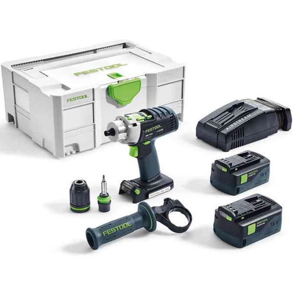 | Set de livrare | 2 acumulatori, Li-Ion, 18 V, 5.2 Ah - BP 18 Li 5.2 AS Incarcator rapid SCA 8 Bit PZ2 Mandrina CENTROTEC pentru prinderea sculelor Mandrina rapida cu FastFix, 13 mm Maner suplimentar lateral Port-bit CENTROTEC Valiza de transport si depozitare SYSTAINER SYS DF T-LOC |
