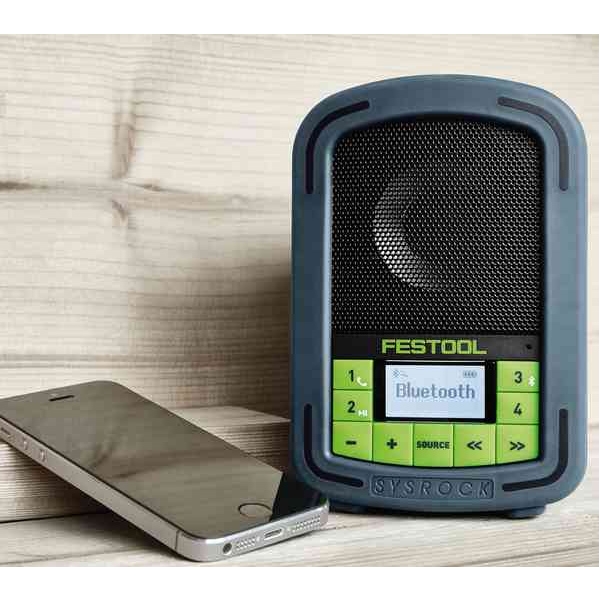 Usor, compact, puternic: aparatul de radio pentru santier SYSROCK se potriveste pe orice banc de fereastra si intruneste dimensiuni compacte cu o greutate scazuta si cu un sunet perfect. Carcasa durabila si robusta din plastic, difuzorul cu neodim rezistent la apa de 2,5 toli si antena flexibila asigura conditiile ca SYSROCK sa ofere un ritm perfect chiar si in conditii de lucru extreme. Iar datorita interfetei Bluetooth si functiei integrate de comunicare libera, puteti asculta, pe langa emisiunile dumneavoastra preferate de la radio, si melodiile preferate de pe smartphone-ul dumneavoastra la o calitate audio SYSROCK - in plus, sunteti intotdeauna de gasit pentru clientii dumneavoastra. Specific pentru Festool.