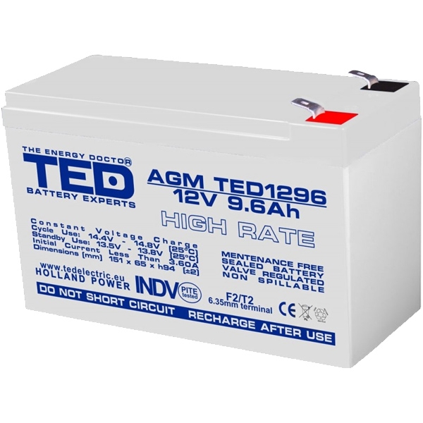 Ted electric - TED1296 - Acumulator VRLA, 12 V, 9.6 Ah