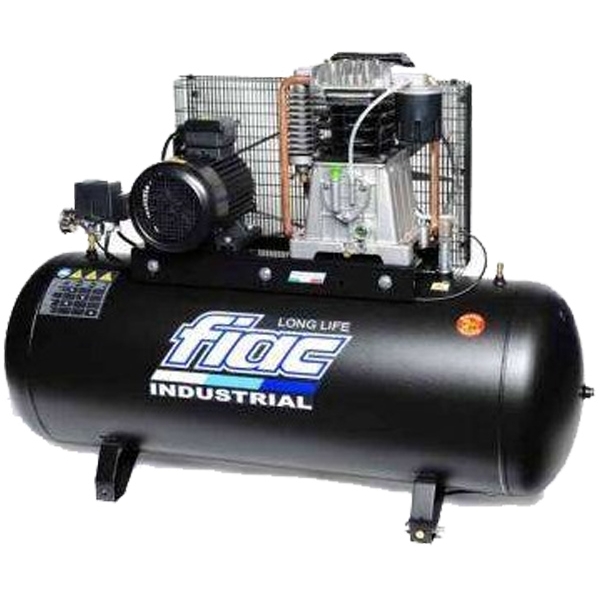 Compresorul de aer profesional Fiac AB 200/360 cu doua pistoane este actionat prin curea de un motor electric.