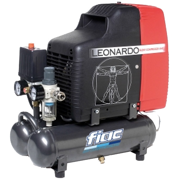 LEONARDO este un compresor coaxial, cu un piston, insonorizat, actionat de un motor electric monofazat cu inductie.