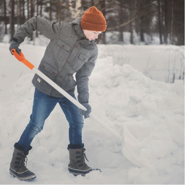 Prevazut cu maner ergonomic de culoare portocalie - usor de gasit in zapada.