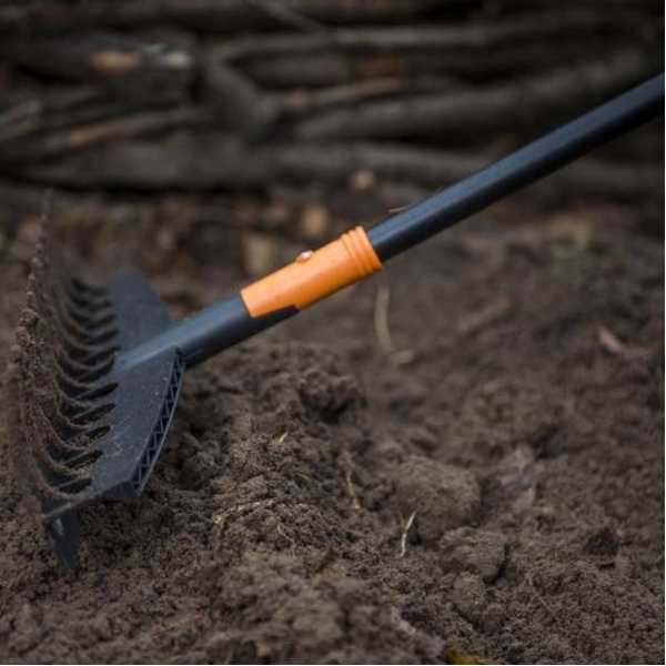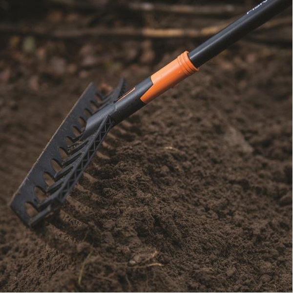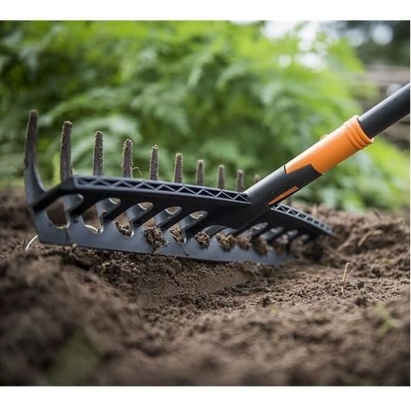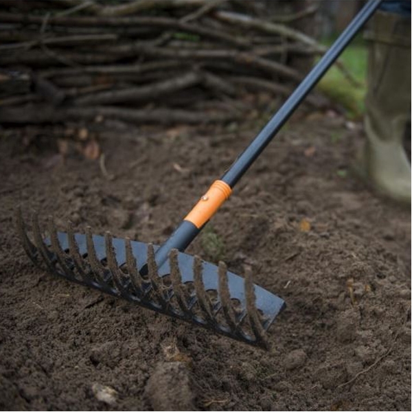 Recomandata pentru greblarea ierbii mari si pentru lucrarile solului, inclusiv nivelare.