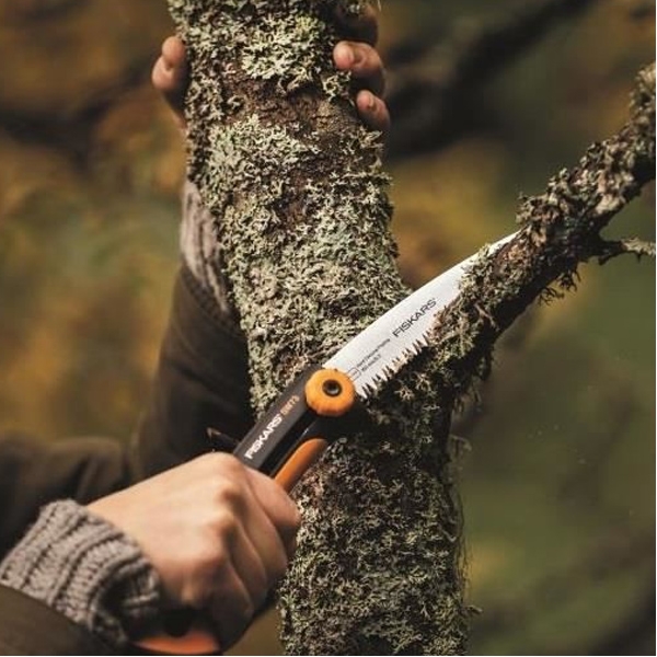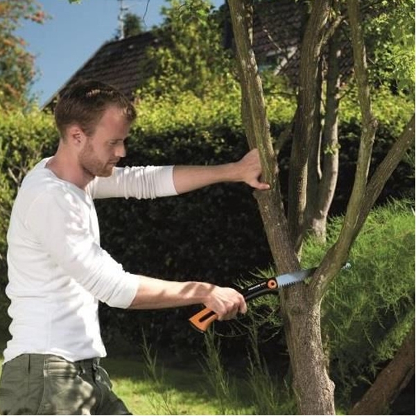 Fierastraul Fiskars Xtract este prevazut cu un maner confortabil SoftGrip™, protectie pentru deget si agrafa pentru curea.