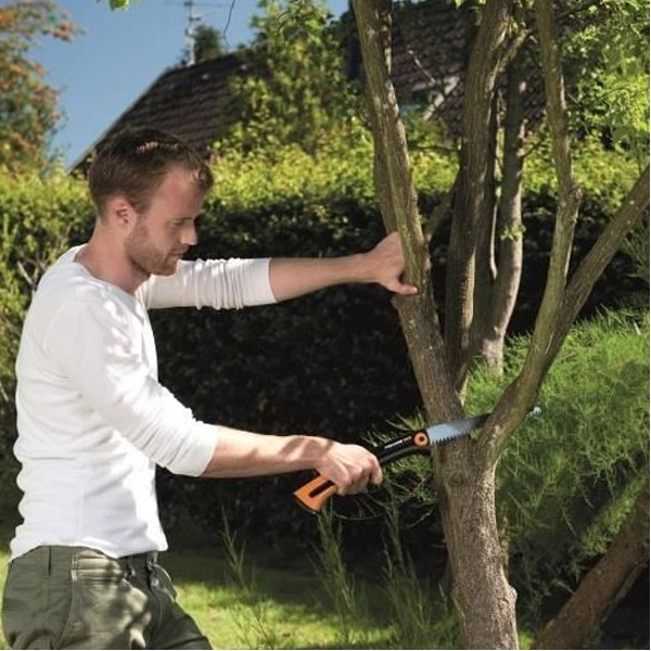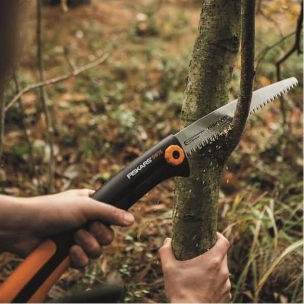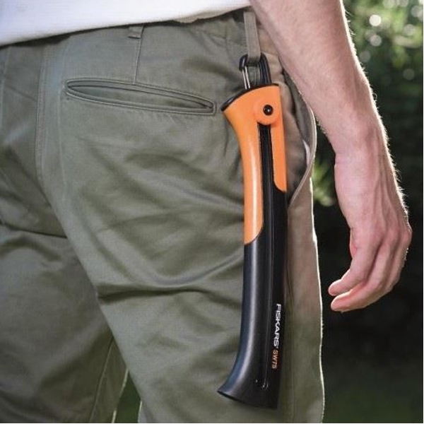 Fierastraul Fiskars Xtract este prevazut cu un maner confortabil SoftGrip, protectie pentru deget si agrafa pentru curea.