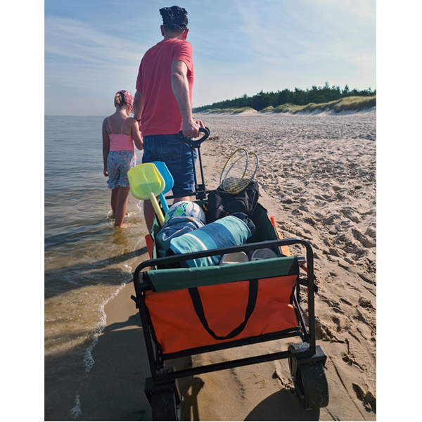 Este excelent pentru transportul echipamentelor de gradinarit, al consumabilelor de uz casnic, pentru cumparaturi si ca carucior pentru drumetii si plaja.