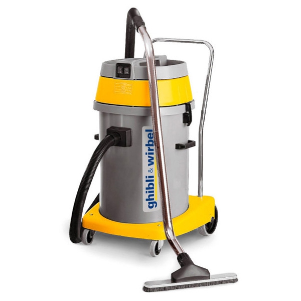 Aspirator umed-uscat mare, incapator si puternic, cu carucior cu roti pivotante.