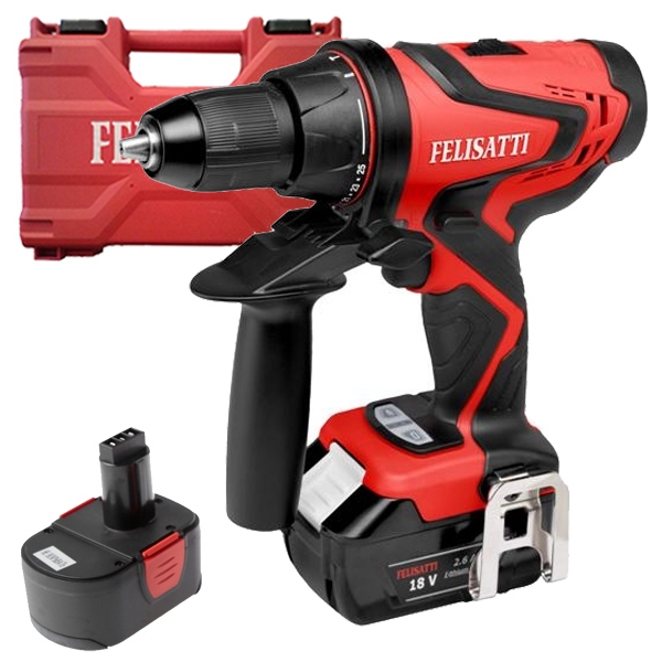 Felisatti - DC13-18IL2 - Masina de gaurit si insurubat cu percutie cu 2 acumulatori, Li-Ion, 18 V, 2.6 Ah, 70 Nm, led iluminare, valiza plastic