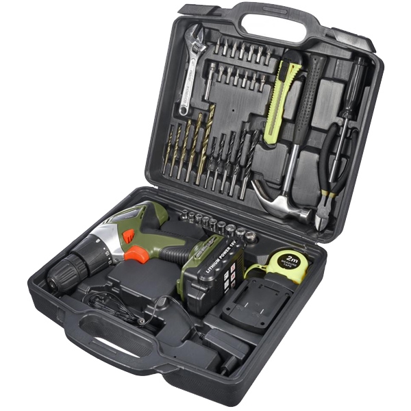 | Set de livrare | 1 acumulator, 18 V, 1.3 Ah Incarcator 5 burghie metal HSS 5 burghie lemn 13 capete de insurubare, 25 mm Ruleta, 2 m Suport magnetic, 60 mm Surubelnita Ciocan Cleste Cheie franceza Valiza de transport si depozitare |