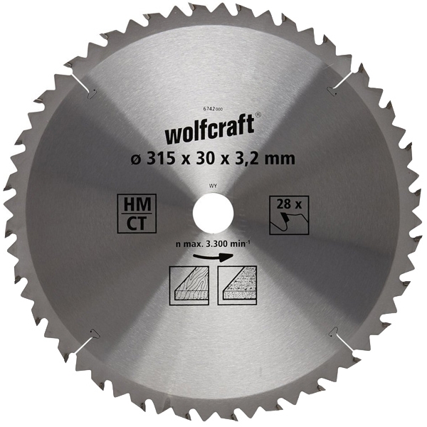 Wolfcraft - 6742000 - Panza fierastrau circular, lemn, 315x30x3.2 mm, 28 dinti