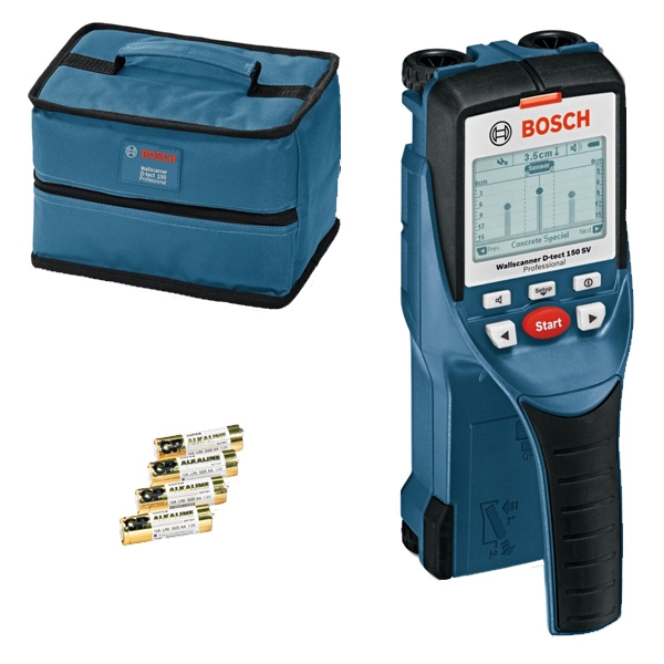 Bosch - D-tect 150 SV - Detector de metale cu 4 baterii alcaline, 150 mm, +/-5 mm/m, geanta textila