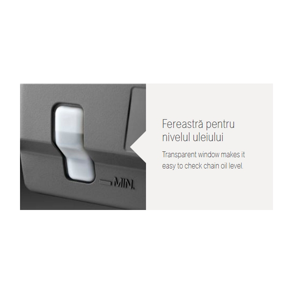 Pornire instantanee, viteza mare de lant si maner frontal confortabil.