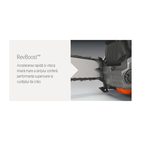 RevBoost asigura acceleratie rapida si viteza mai mare a lantului pentru performante optime la curatrea crengilor.