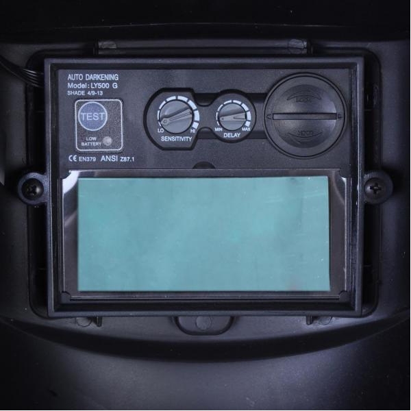 Un set de senzori detecteaza intentitatea luminoasa inregistrata la activarea arcului si modifica imediat opacitatea ecranului la nivelul adecvat pentru cantitatea de radiatii emisa.