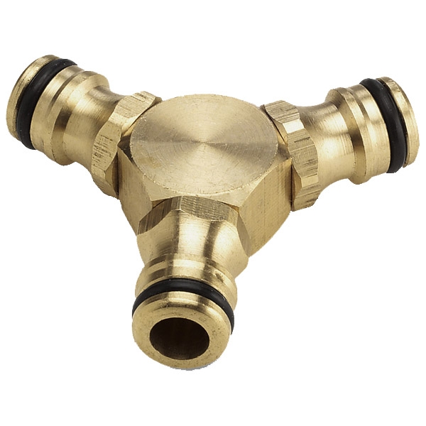 Conectorul de alama cu trei cai, robust, de inalta calitate pentru cuplarea a trei furtunuri.