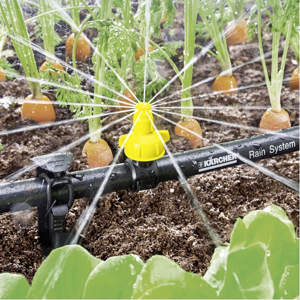 Colierele de pulverizare sunt parte a Karcher Rain System. Acestea pot fi fixate rapid in orice moment la furtunul Karcher Rain System. Instalarea este rapida, simpla si nu necesita instrumente. Acul integrat de pe colierul deschis de pulverizare este pur si simplu blocat in furtun. Prin inchidere, colierul de pulverizare este fixat in mod sigur de furtun. Alinierea unghiului de pulverizare poate fi ajustata orizontal si vertical datorita capului rotativ. Pe duza, volumul de apa poate fi ajustat de la 0-55 l/h conform cerintelor si pentru a conserva resursele. Deosenit de eficient Karcher Rain System cu presiune de 4 bari contine un furtun de 1/2" cu picurare si coliere de pulverizare si combina avantajele micro-picurarii si ale irigarii conventionale. Karcher Rain System poate fi adaptat individual la orice gradina si lucreaza perfect cu SensoTimer pentru controlul irigarii in functie de necesitati.