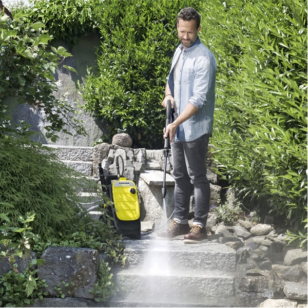 Aparatul de spalat cu presiune K7 Compact curata murdaria de pe suprafete cu un randament de 60 m2/h.