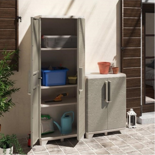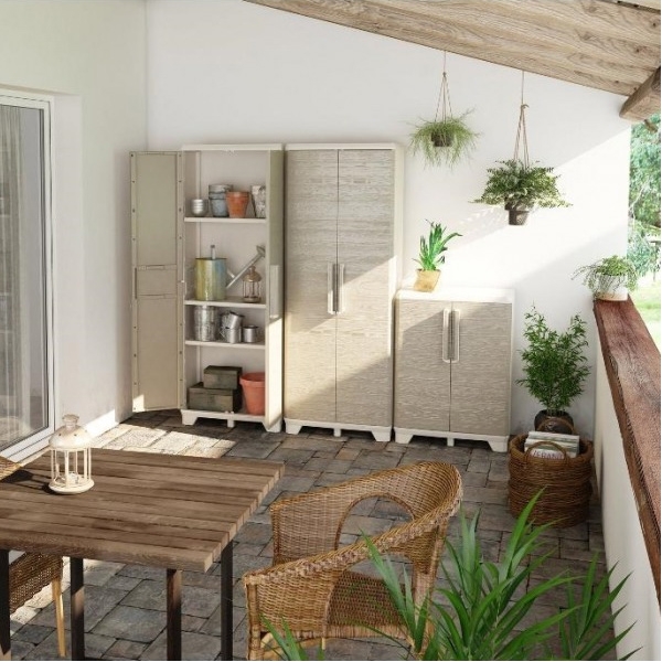 Este potrivit pentru depozitarea si organizarea accesoriilor de gradina, sculelor si uneltelor sau obiectelor diverse utilizate in gospodarie. Acesta se caracterizeaza prin usi de culoare bej ce imita lemnul natural, prevazute cu balamale metalice rezistente si o predispozitie pentru lacat (lacatul nu este inclus).