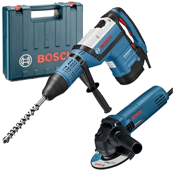 Bosch - GBH 12-52 DV + GWS 850 C - Rotopercutor SDS-Max, 1700 W, 19 J, sistem antivibratii, led service, frana siguranta, valiza plastic