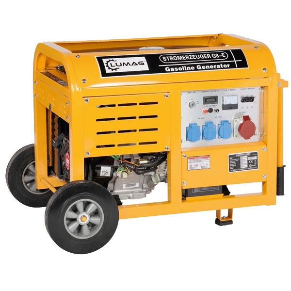Generatorul de curent Lumag G8E are motor puternic, in 4 timpi pe benzina, baterie de 12V si pornire electrica.
