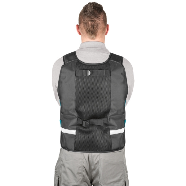 Pe langa numeroasele buzunare si curelele elastice din fata, vesta are benzi reflectorizante si tesatura 3D cu ochiuri de plasa pentru respirabilitate.