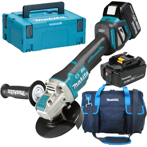 1 x Makita - DGA519RTJ X-LOCK - Polizor unghiular cu 2 acumulatori, Li-Ion, 18 V, 5 Ah, 125 mm, motor fara perii, turatie reglabila, protectie repornire, valiza speciala:
