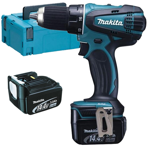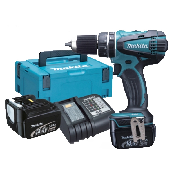Makita DHP446RFJ - Masina de gaurit si insurubat cu percutie cu 2 acumulatori