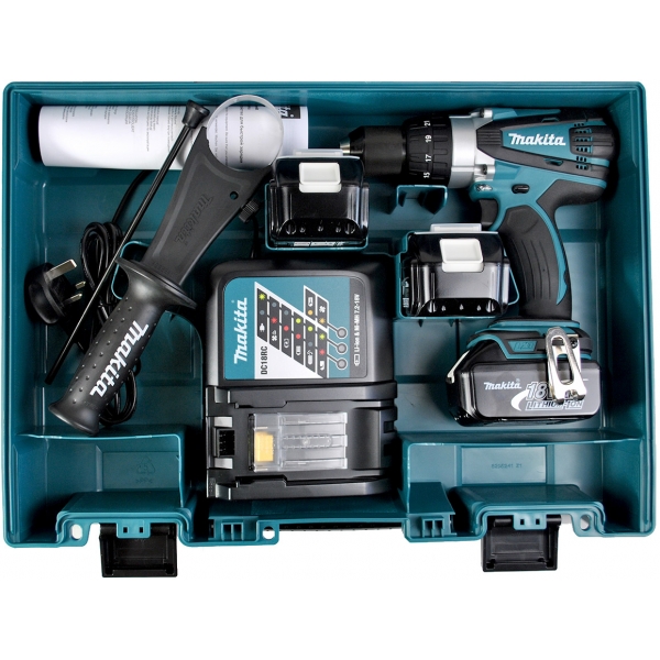 Makita DHP458RFE3 - Masina de gaurit si insurubat cu percutie cu 3 acumulatori