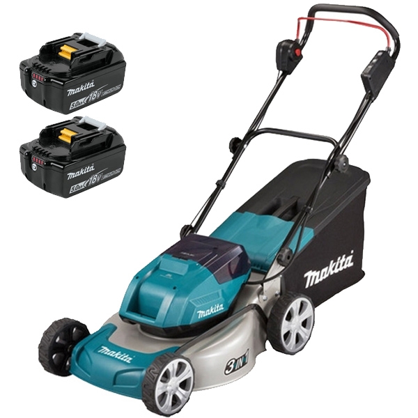 | Set de livrare | 2 x acumulatori, Li-Ion, 18 V, 5 Ah Incarcator Cutit Cheie SW17 Sac colector Blocator mulching |