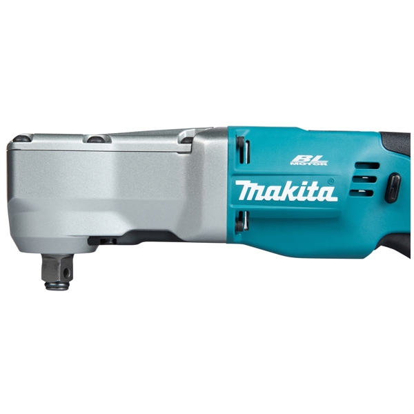 Cheia de impact unghiulara LXT 18 V, cu prindere patrata de 1/2 inch si sistem de fixare cu inel de frictiune si bolt de siguranta, ofera un cuplu maxim de 340 Nm.