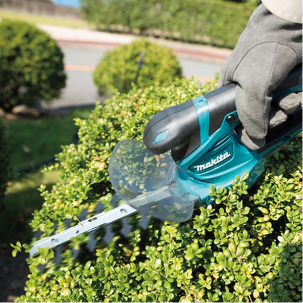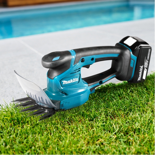 Foarfeca Makita DUM111SYX pentru tuns iarba si gardul viu, se livreaza cu ambele seturi de lame, un acumulator de 18 V, 1.5 Ah si incarcator standard.
