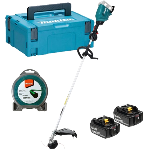 | Set de livrare | 2 x acumulatori Li-Ion, 18 V, 6 Ah Incarcator dublu DC18RD Fir Round Trim, 2 mm, 15 m Cap cu fir Cap cu lame plastic Disc cu 4 dinti Curea de umar Valiza speciala Makpac |