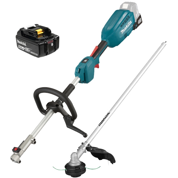 Coasa multifunctionala Makita cu maner tip bucla, motor puternic fara perii, turatie variabila si frana electrica.