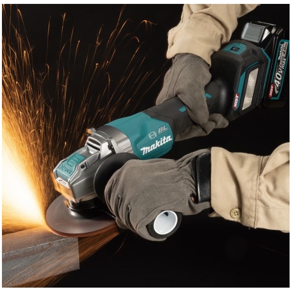 Polizor unghiular 125 mm cu buton lateral glisant, alimentat de un acumulator XGT de 40 V pentru performanta crescuta.