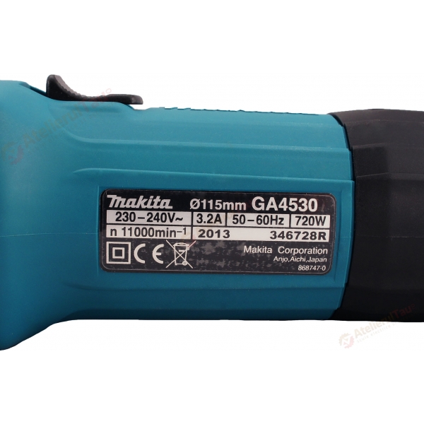 Polizorul unghiular Makita GA4530 este un polizor profesional, usor, cu motor puternic si disc de 115mm. Polizorul se poate folosi la tairea si la slefuirea metalelor, si nu numai. GA4530 este dotat cu motor de 720W.