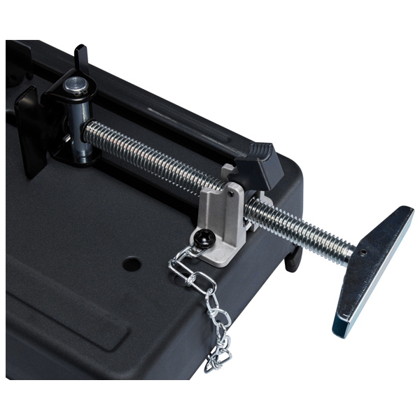 Dispozitivul de prindere a materialului are un sistem de fixare rapida si o baza rotativa, pentru o manevrare usoara a pieselor.