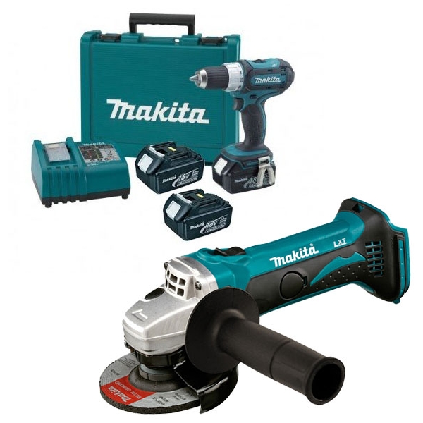 Makita - Pachet DDF453RFE3 masina de gaurit si insurubat cu 3 acumulatori Li-Ion 18 V si 3 Ah si DGA452Z polizor unghiular
