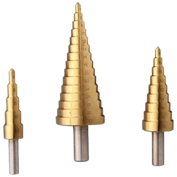 Set format din 3 burghie cu diferite dimensiuni de foraj in trepte pentru tabla.