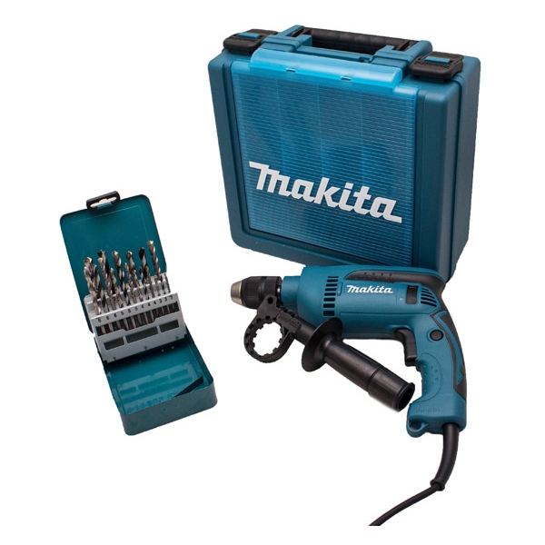 Este livrata in valiza de depozitare si transport si cu un set de burghie lemn, metal si beton