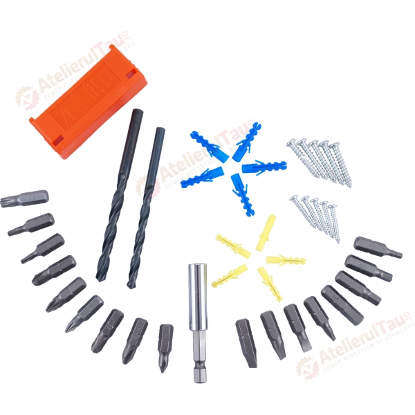 | Set de livrare | 1 acumulator Ni-Cd Incarcator Geanta de scule Set capete de insurubat Suruburi si dibluri |