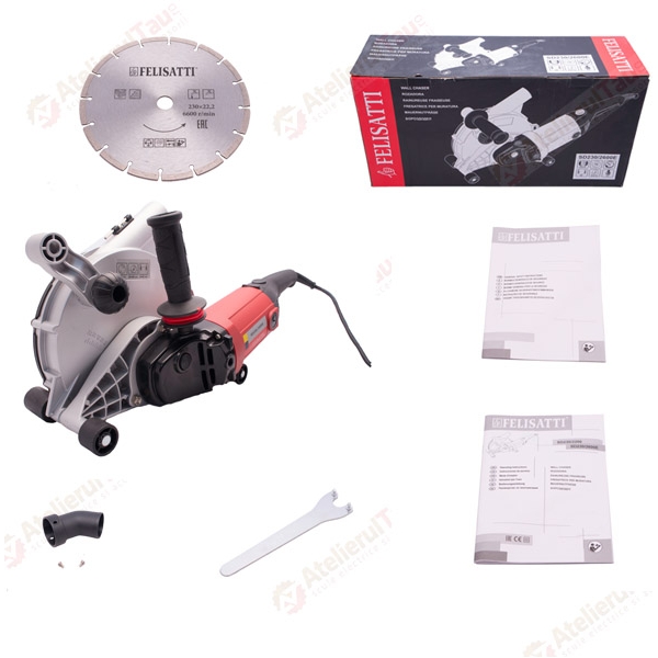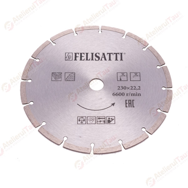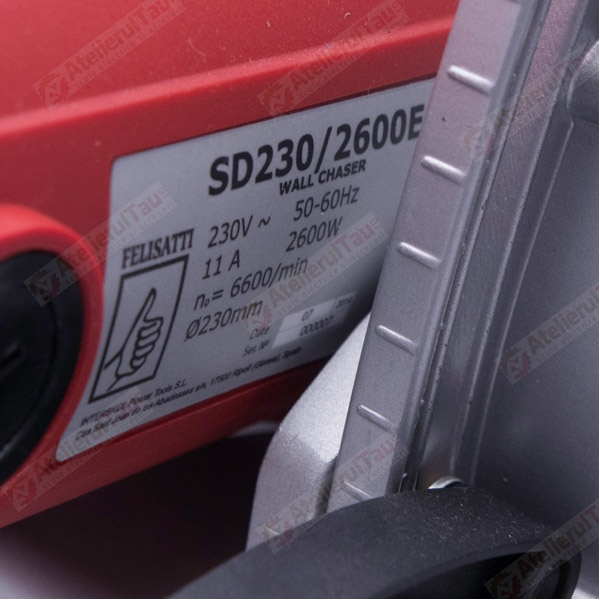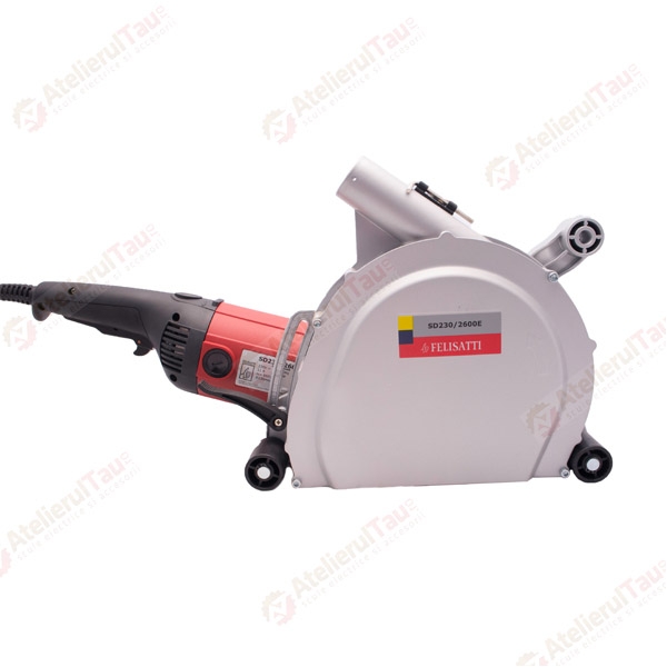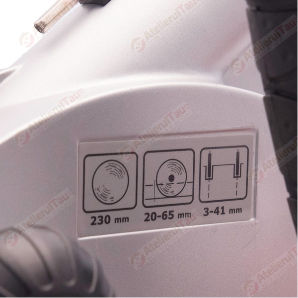 Diametrul discului diamantat de 230 mm, ofera o adancime de taiere de maxim 65 mm