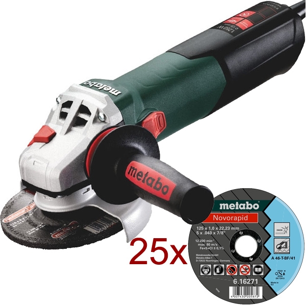 1 x Metabo - W 12-125 QUICK - Polizor unghiular, 1250 W, 125 mm, piulita rapida, aparatoare rapida, maner antivibratii: