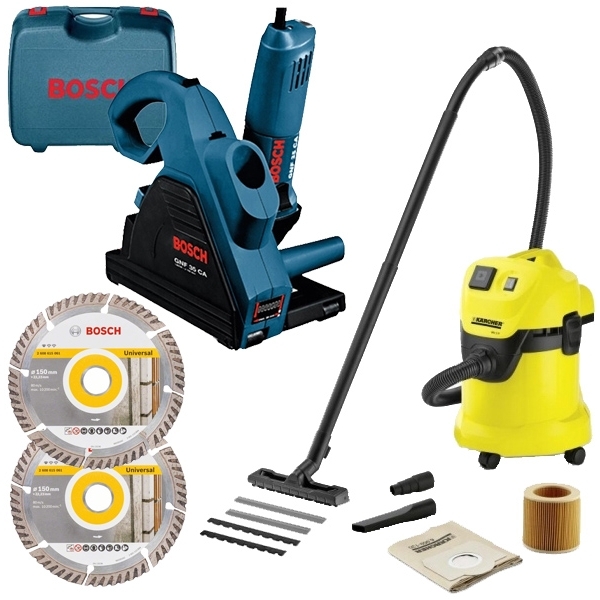 Bosch - Bosch - GNF 35 CA - Freza pentru caneluri beton, 1400 W, 150 mm, valiza plastic cu doua discuri diamantate si aspirator Karcher WD 3 P