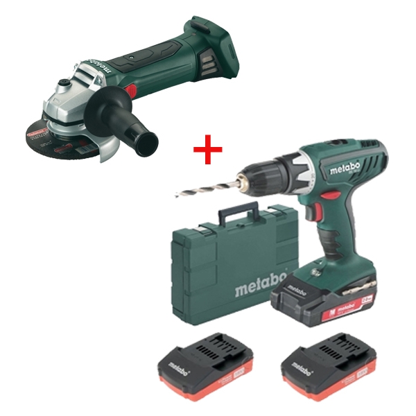METABO - BS 18 LI cu 3 acumulatori + W 18 LTX 125 QUICK - Pachet Masina de gaurit-insurubat cu 3 acumulatori + Polizor unghiular mic cu acumulator