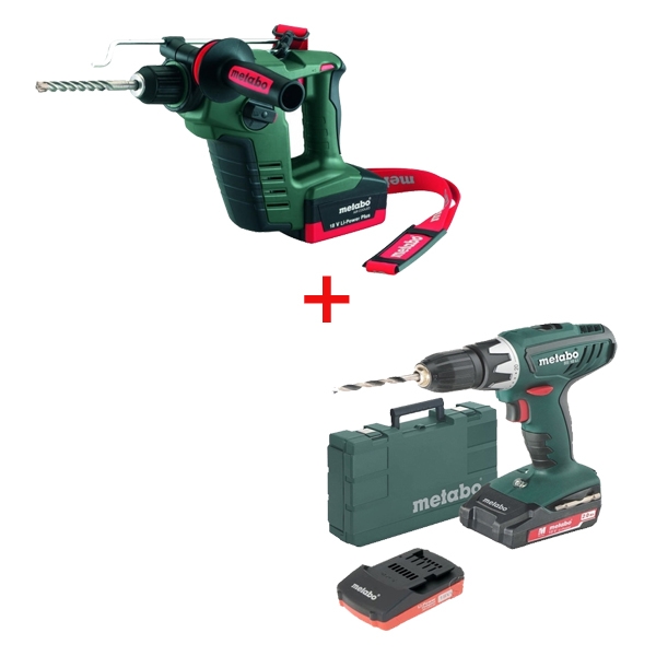 Metabo BS 18 LI cu 2 acumulatori + Metabo BHA 18 LTX - Pachet Masina de gaurit-insurubat cu 2 acumulatori + Rotopercutor SDS-Plus cu acumulator