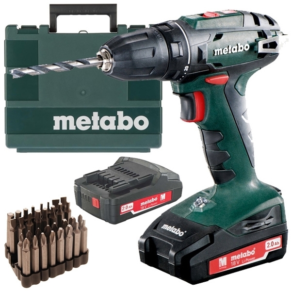 - METABO - BS 18 LI - MASINA DE GAURIT SI INSURUBAT CU 2 ACUMULATORI, LI-ION, 18 V, 2 AH, 48 NM, LED ILUMINARE, VALIZA PLASTIC