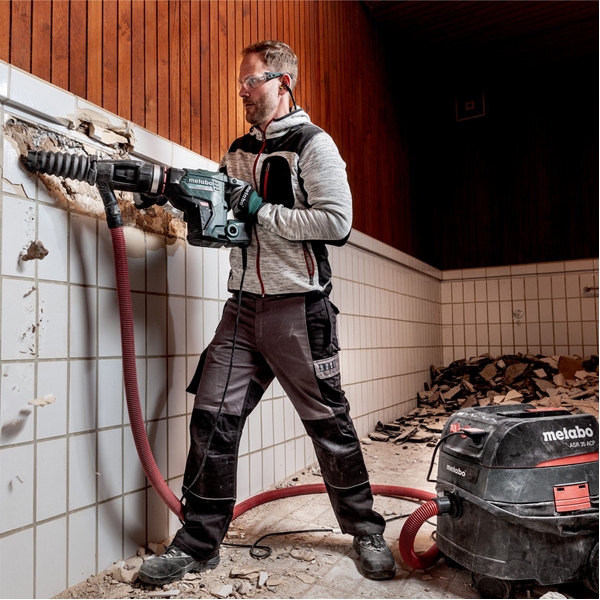Metabo VibraTech (MVT) cu amortizare dubla: manerul decuplat si greutatea contra-oscilanta de absorbtie a impactului reduc activ vibratiile pentru o munca sanatoasa, de asemenea, in uz continuu.