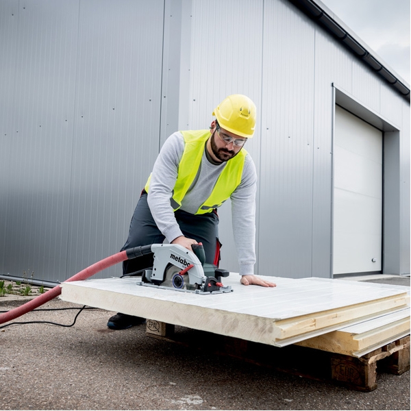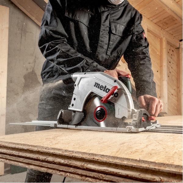 Taieri rapide si precise cu o simpla fixare la o sina de cap de taiere Metabo KFS (accesoriu).